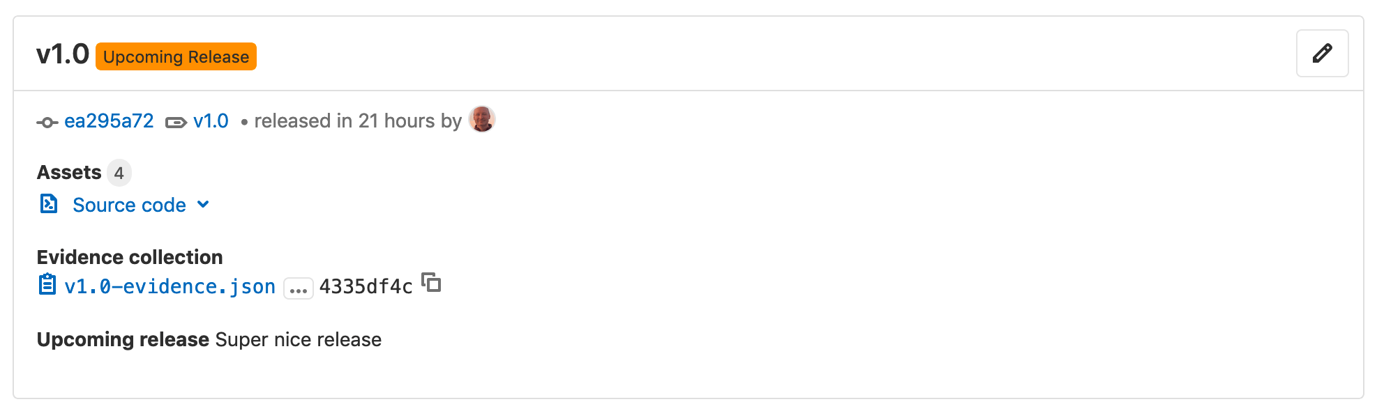 When you create a release, if job artifacts are included in the last pipeline that ran, they are automatically included in the release as release evidence.